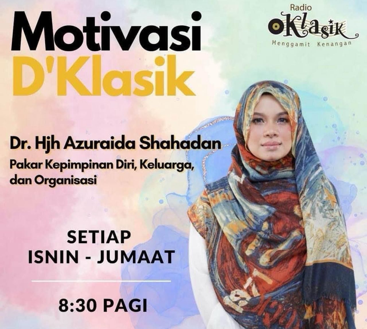 Saya, Dr Azuraida Shahadan. Seorang Pakar Kepimpinan Diri Keluarga dan Organisasi dan Pakar Terapi Minda. Pengasas Psychology 3K (Kebahagian, Kejayaan, Kekayaan). Saya selalu bercakap mengenai minda dan kepimpinan di stesen televisyen seperti TV1, RTM TV2, TV3, Astro, di radio, di majalah-majalah, akhbar-akbar harian, sekolah, institusi pengajian tinggi, syarikat antarabangsa dan banyak lagi! Saya belajar beberapa ilmu Psychotherapy dari UK dan Cognitive Fitness dari Harvard, serta beberapa ilmu minda daripada seorang pakar biology yang kini menetap di Boston America. Kesemua ilmu ini telah saya aplikasikan dalam kehidupan dan Alhamdulilah ia banyak mengubah kehidupan saya yang dahulunya pernah gagal dalam pelajaran, gagal dalam perkahwinan, dan gagal dalam perniagaan. Ilmu ini juga telah saya ajarkan kepada beberapa teman dan terbukti ia mengubah kehidupan mereka dalam tempoh kurang daripada seminggu. Dan kini, beribu individu telah mempelajari dan berjaya mengubah kehidupan serta mencapai impian mereka dengan hanya memahami Ilmu Panduan Unggul Ubah Hidup Tarik Impian Jadikan Kenyataan menggunakan Teknik LIMA. Jika mereka mampu, anda juga mampu. Saya yakin dengan Izin Allah, ilmu ini adalah ilmu yang akan mengubah kehidupan anda, InshaAllah!